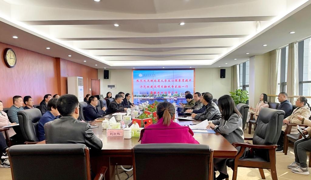 本网讯(通讯员 陈文琴)2021年12月9日,省教育厅“湖南省大学生心理素质提升示范校建设项目”验收专家小组一行6人莅临永利官网现场验收。校长汤放华热情接待了专家组一行,副校长袁志成、部分职能处室负责人、各二级学院副书记、心理健康教育中心全体教师和部分辅导员代表参加汇报会和反馈会。