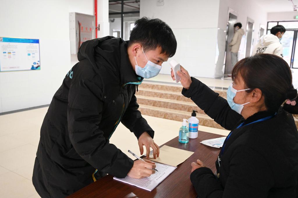 进入寝室测量体温。