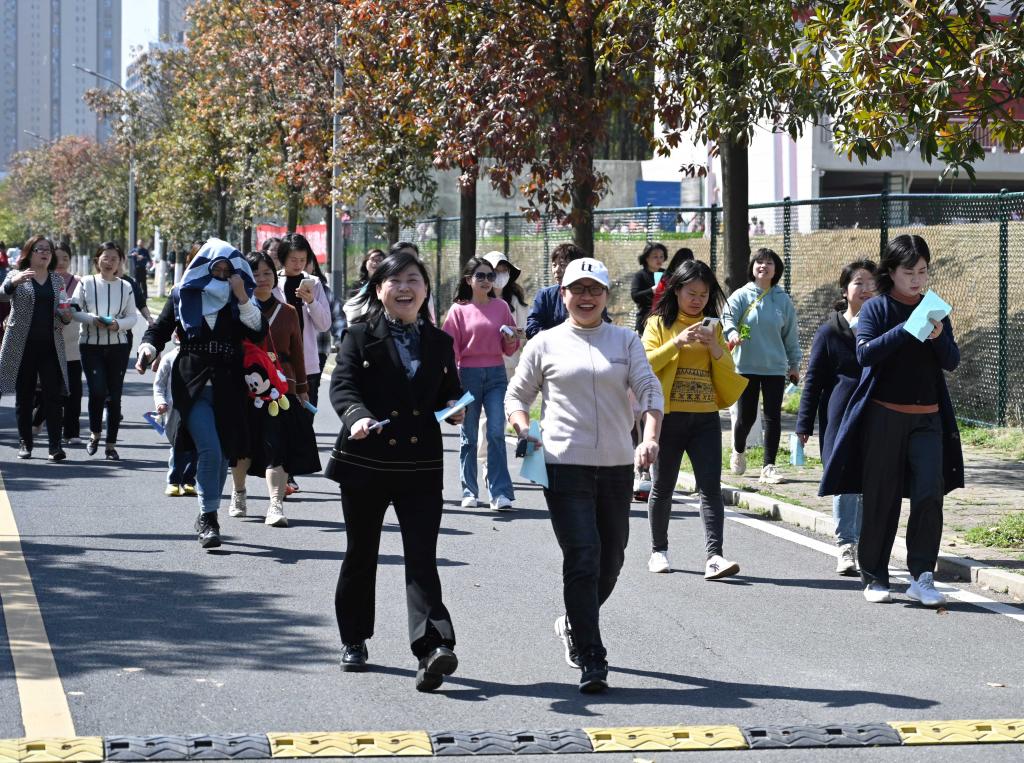 党委副书记何旭娟为参与慢步跑的女教职工鸣响第一枪。