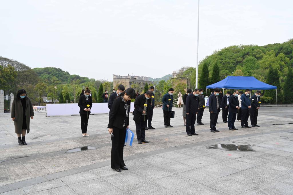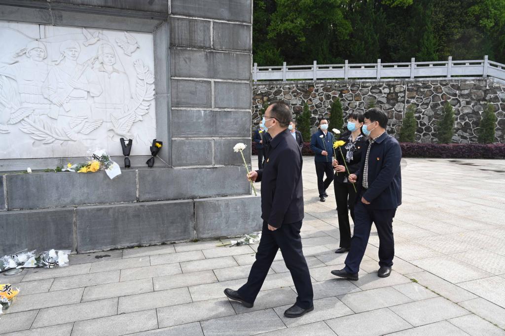 上午9:30,全体成员到达活动现场,严格遵守防疫要求,扫场所码,戴好口罩。苍松翠柏掩映着的益阳烈士纪念碑巍然耸立,大家在烈士纪念碑前整齐列队、肃立,奏唱国歌,工作人员手抬花篮缓步走向纪念碑,校党委书记李建奇和校长汤放华上前为花篮整理缎带。随后,全体人员向烈士默哀,深切表达缅怀之情。大家怀着无比崇敬的心情依次环绕瞻仰了烈士纪念碑,参观了英烈事迹墙,对革命英烈致以无尽哀思与深切怀念。