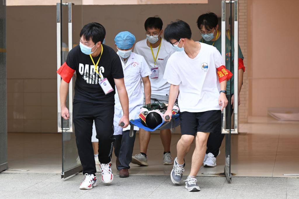 9月20日,yl23455永利官网参加消防演练的同学们用湿毛巾捂住口鼻,有序撤离。