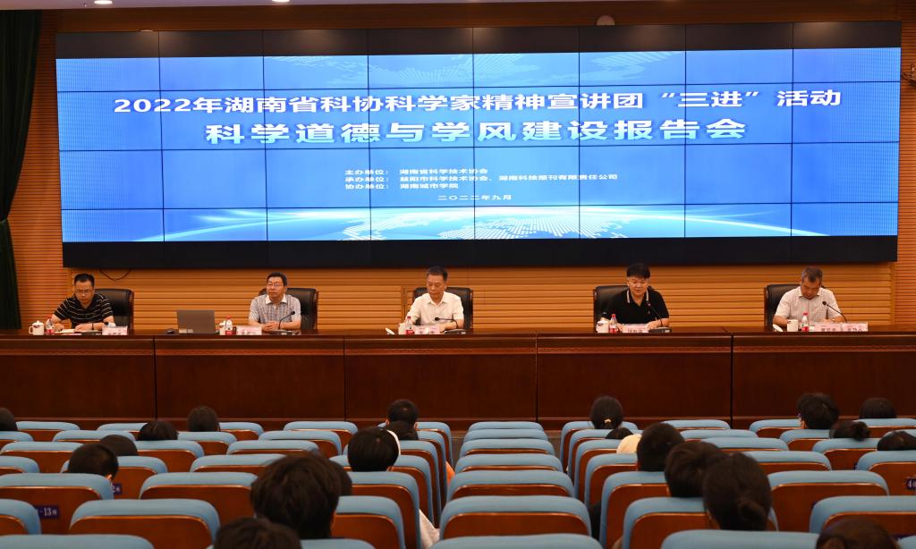 本网讯(通讯员 刘湛军)9月20日,2022年湖南省科协科学家精神宣讲团“三进”活动在永利官网图书馆报告厅举行。省科协党组成员、副主席张辉学,湖南师范大学教授、博士生导师匡乐满,校长汤放华,副校长袁志成出席,160余名师生参加。活动由益阳市科协党组书记、主席曹卫兵主持。