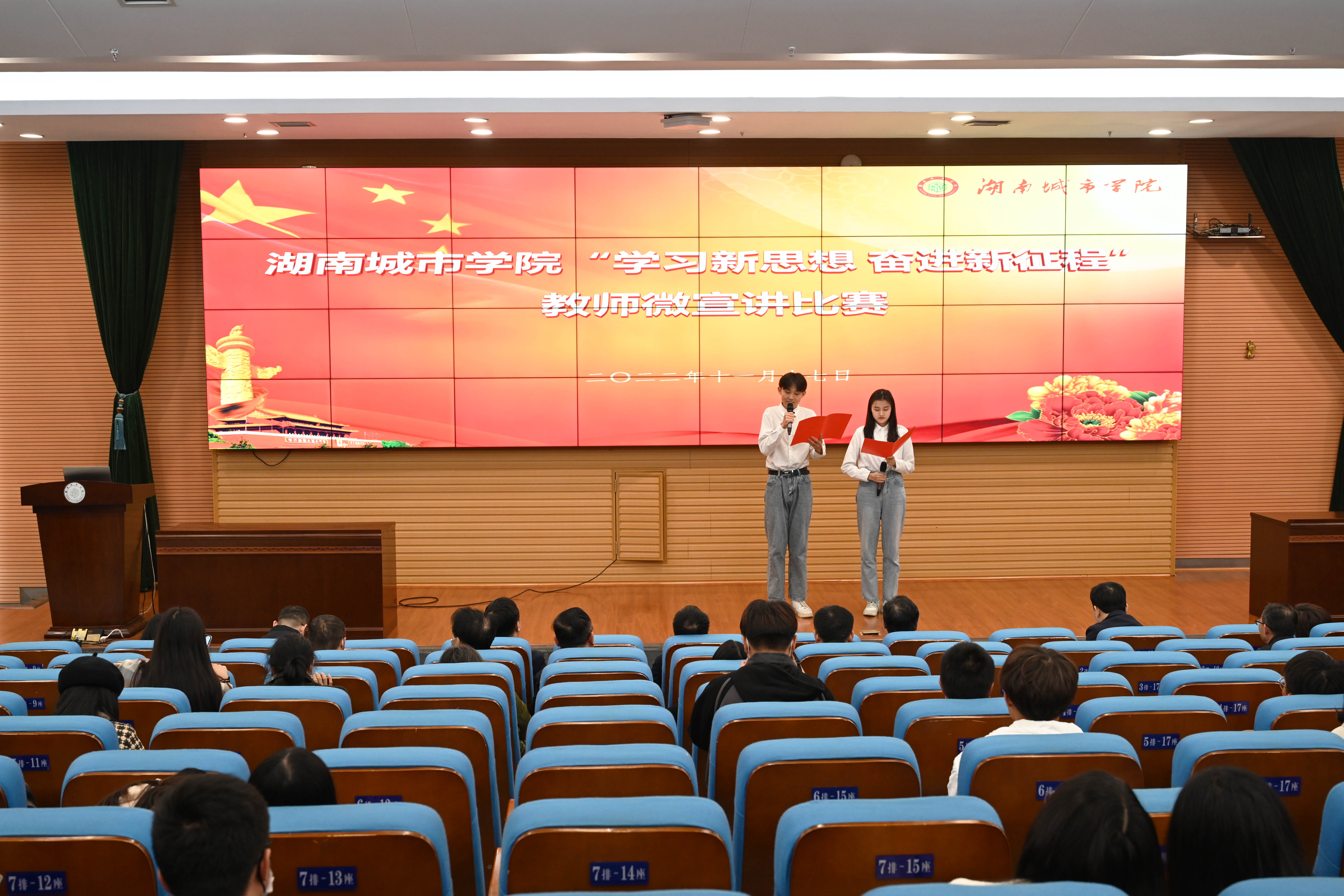 本网讯(通讯员 周文娟)“党的二十大开启了以中国式现代化全面推进中华民族伟大复兴的新征程,中国式的现代化需要现代化的人才做支撑……” 11月17日,yl23455永利官网“学习新思想,奋进新征程”教师微宣讲比赛在图书馆报告厅举行。来自各二级单位的18位参赛选手们围绕党的二十大报告,从党的二十大的历史地位与重大意义、党的二十大精神等方面,用“小故事”诠释“大道理”,将党的创新理论送到师生的心坎上。党委副书记何旭娟,副校长袁志成,党委委员、组织部部长吕贤军出席。