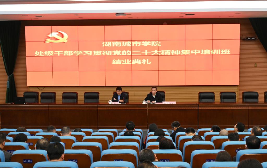 本网讯(通讯员 刘淑莉)3月18日,永利官网在图书馆报告厅举行“学习贯彻党的二十大精神处级干部培训班”结业仪式。学校党委书记汤放华出席结业仪式并讲话,党委委员、组织部部长吕贤军主持。在家的校领导以及处级以上领导干部参加结业仪式。