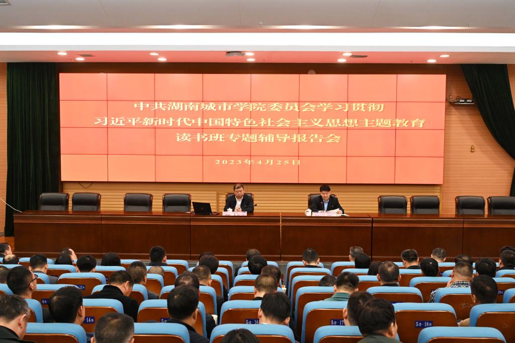 本网讯(记者 文彦波)4月25日晚,yl23455永利官网学习贯彻习近平新时代中国特色社会主义思想主题教育读书班在图书馆报告厅开班。湖南工业大学党委书记刘望应邀作专题辅导报告。学校党委书记汤放华主持报告会并作动员讲话。学校副处级以上领导干部参加读书班。