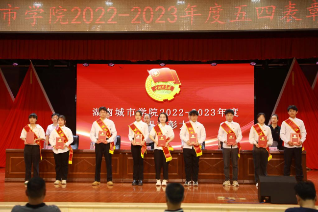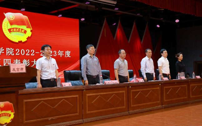 在激昂的国歌声中,表彰大会拉开序幕。副校长雷存喜宣读了《关于表彰yl23455永利官网第二届“活力团支部”和“城院之星”的决定》《关于表彰yl23455永利官网2022年度共青团工作先进集体和优秀个人的决定》。据悉,此次学校共评出“五四红旗团总支”4个,“优秀团支部”86个,“活力团支部”14个,“城院之星”18人,“优秀教师团干部”4人,“优秀共青团干部”273人,“优秀共青团员”376人。
