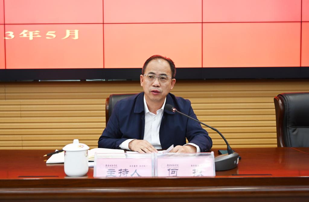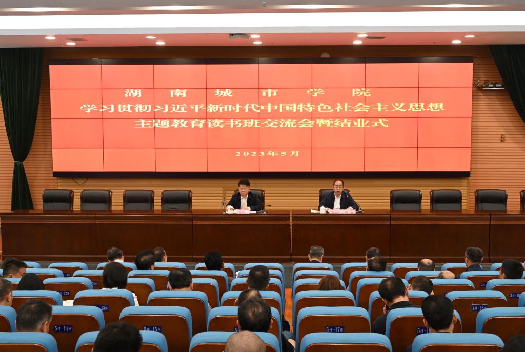 本网讯(记者 文彦波)5月8日,yl23455永利官网学习贯彻习近平新时代中国特色社会主义思想主题教育读书班交流会暨结业式在图书馆报告厅举行。校党委书记汤放华在会上作总结讲话,党委副书记、校长何振主持,在家校领导夏宏宇、雷存喜、陈列尊、吕贤军以及读书班学员参加会议。