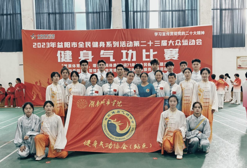 本网讯(通讯员 廖玉美)6月3日,益阳市第二十三届大众运动会健身气功比赛在奥林匹克体育馆举行,来自益阳市各县市区、市直单位、省直单位共60支队伍参加比赛,永利官网共派出四支师生队伍共计24人参加了八段锦和马王堆导引术两个项目的比赛。