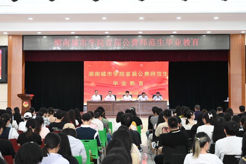 本网讯(供稿:教务处)6月12日,yl23455永利官网首届公费师范生毕业教育主题活动在学校学生活动中心举行。益阳市人民政府副厅级干部喻国良、益阳市教育局相关领导,校党委书记汤放华、副校长雷存喜出席,相关二级学院党委书记、教学副院长、教务处负责人以及2023届公费师范毕业生参加了此次活动。活动由雷存喜主持。