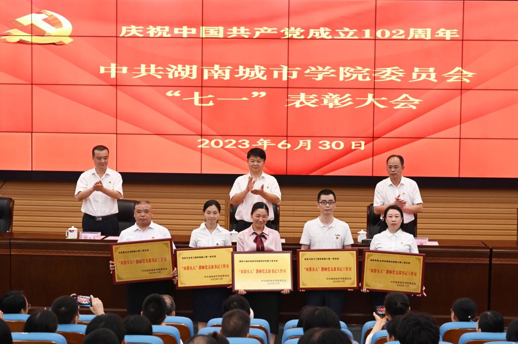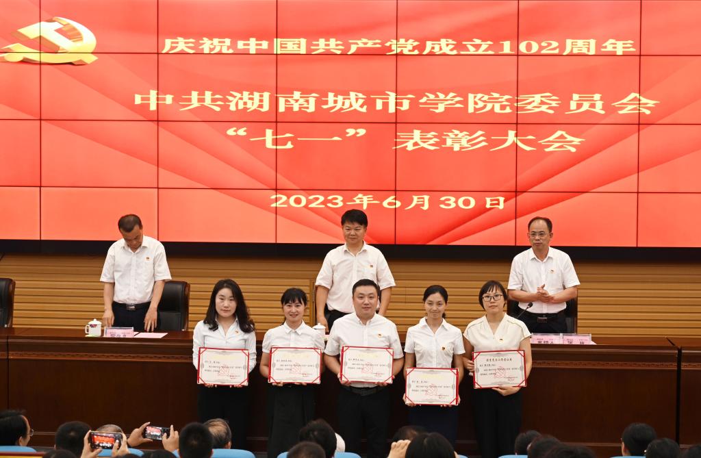 党委委员、组织部部长吕贤军宣读了党建对标争先建设评选结果和“两优一先”表彰决定。对5个获得全省高校党组织“对标争先”建设计划第三批项目单位及个人、14个获得学校基层党组织“先锋工程”建设计划第二批项目和5个“双带头人”教师党支部书记工作室的单位和个人、40个获得校级“两优一先”先进基层党组织和个人进行了表彰。