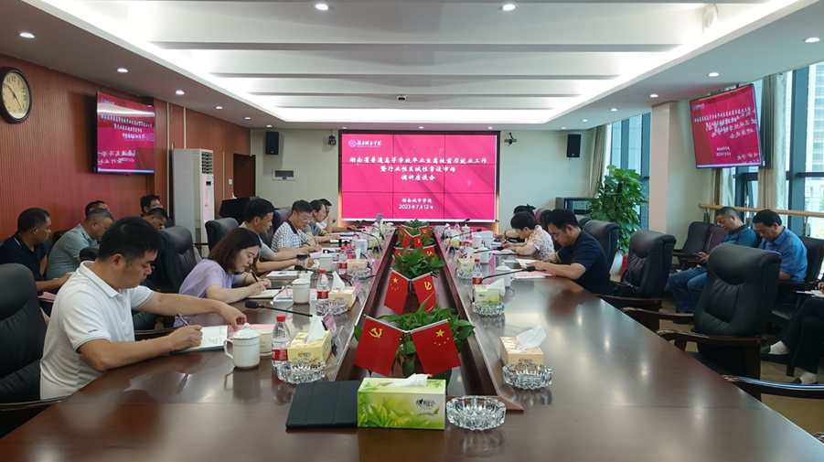 本网讯(供稿:招生就业处)7月12日上午,湖南省教育厅就业指导中心副主任曾静一行来永利官网调研省高校毕业生离校前后就业工作暨行业性区域性常设市场(益阳片区)建设工作,并进行座谈交流。学校纪委书记陈列尊主持会议,各二级学院党委书记,招生就业处、网络与信息管理中心以及湖南工艺美术职业学院、益阳医学高等专科学校、益阳职业技术学院有关负责同志参与调研。