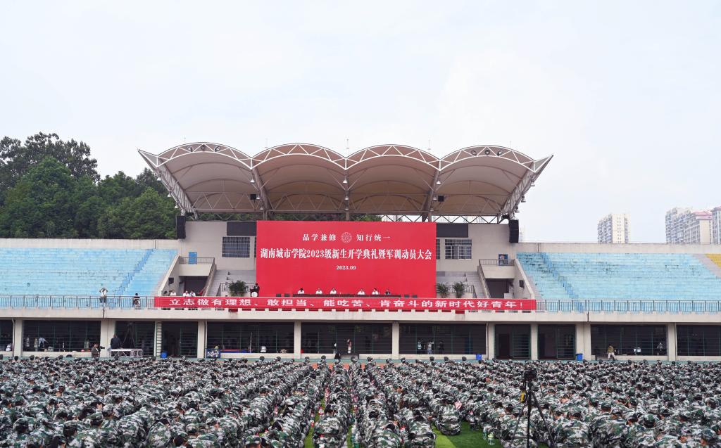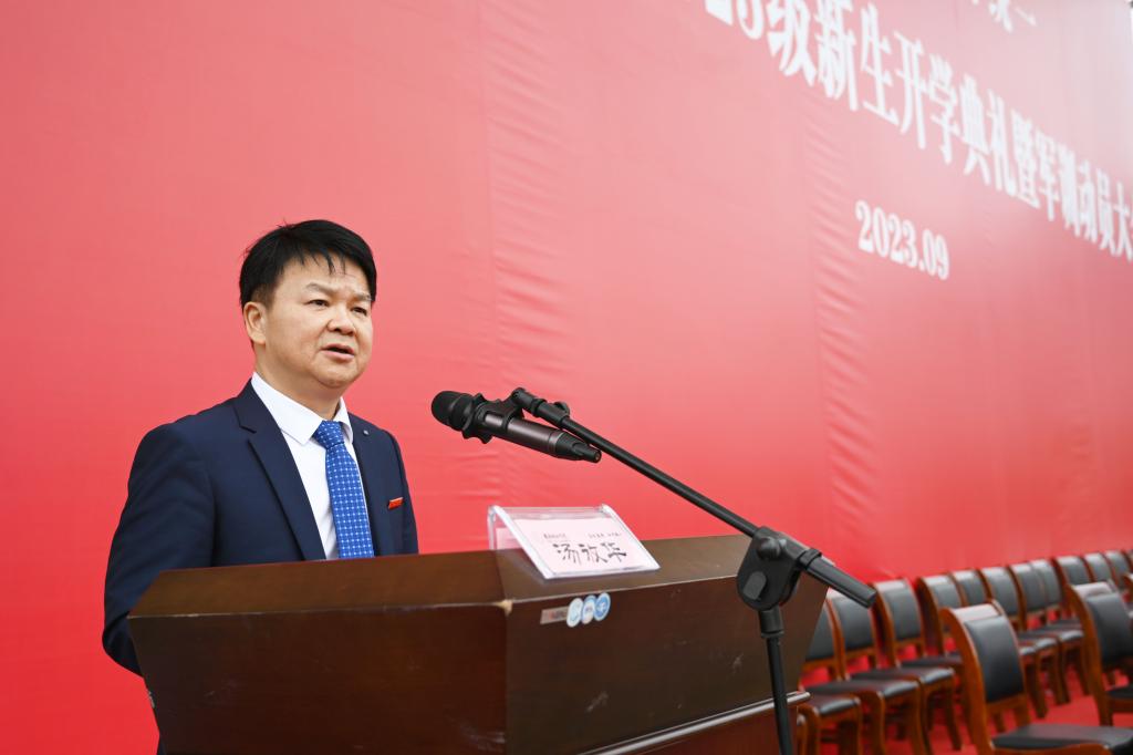 本网讯(记者 文彦波)金秋九月,惠风和畅,yl23455永利官网迎来了7000余名新同学。为做好新生思想教育工作,为新生扣好大学第一粒扣子,9月14上午,学校党委书记汤放华以“以学立身 品学兼修 绽放新时代城院学子的绚丽风采”为题,在东田径场为2023级全体新同学讲授开学第一堂思政课。副校长雷存喜主持。
