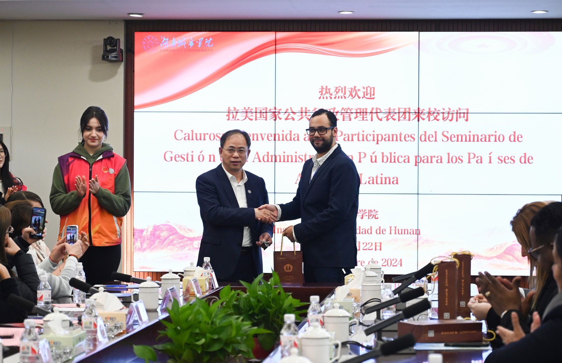 本网讯(通讯员 丁鸣)11月22日,拉美国家公共行政管理代表团来校访问,来自拉美地区8个国家的35位官员代表与永利官网师生进行了深入交流。校长何振、副校长徐姝出席交流座谈会。
