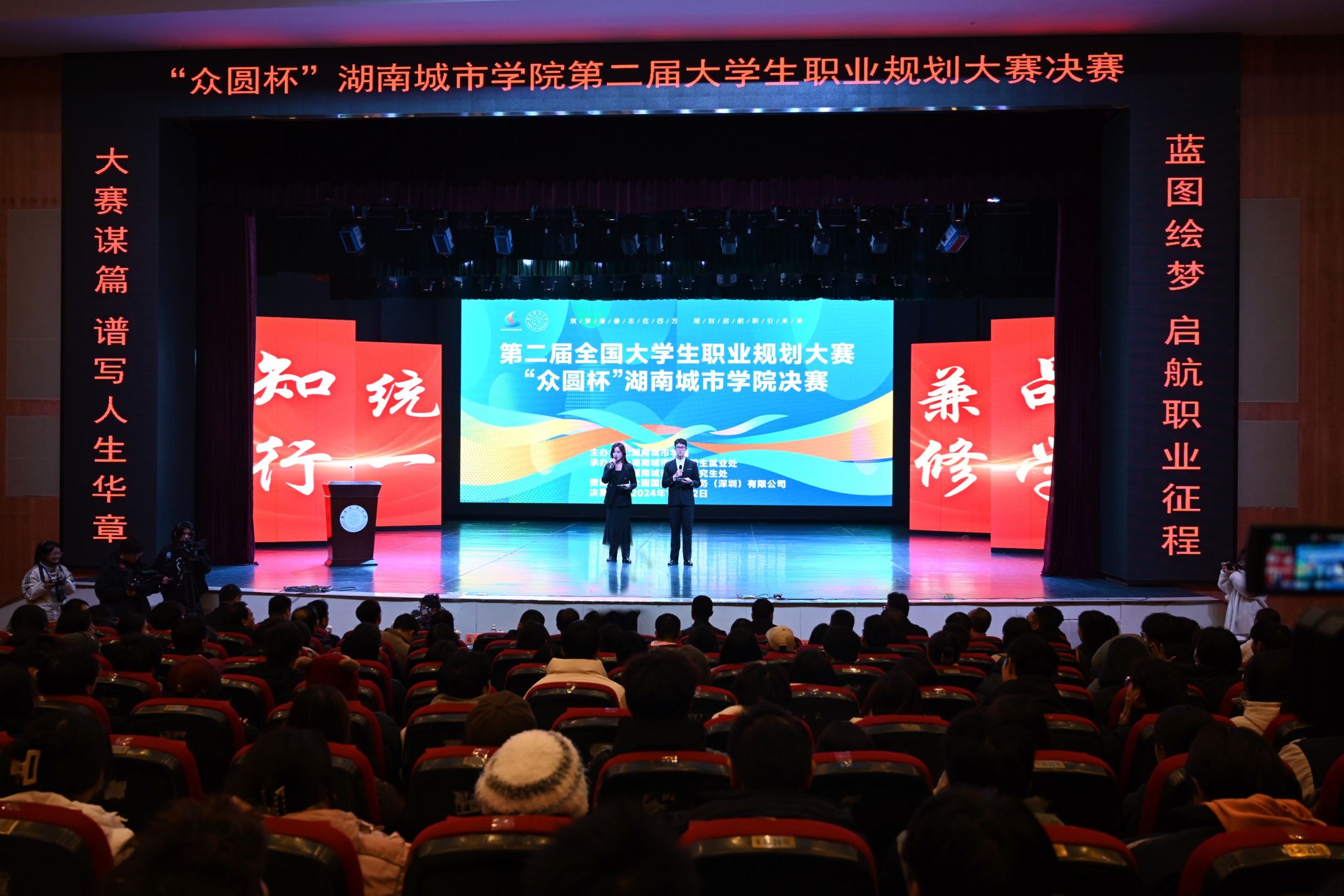 本网讯 (通讯员 张人丹 李宇帆)为深入贯彻落实党中央、国务院决策部署,加强大学生生涯教育和就业指导,增强大学生职业规划意识,12月12日下午,“众圆杯”yl23455永利官网第二届大学生职业规划大赛决赛在音乐厅举行。校长何振、副校长孙倩出席决赛。