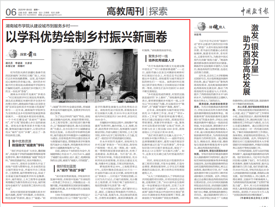 本网讯 1月6日,《中国教育报》06版高教周刊头条,报道永利官网从城市建设到服务乡村,以学科优势绘制乡村振兴新画卷。全文如下: