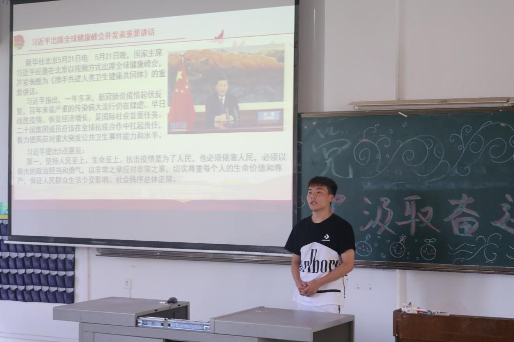 本次政治学习从“奋斗百年,启航新程”、“知史爱党,知史爱国”、“砥砺前行,书写华章”、“筑梦人生,放飞梦想”四个版块进行深入讲述剖析。本次政治学习首先向大家提问了“10道题”,从习近平主席的讲话中得到了答案——人民。“人民”二字重千钧,我们党的根基在人民,血脉在人民,力量在人民。为中人民谋幸福,为中华民族谋复兴的初心和使命,中国共产党人不驰于空想,不骛于虚声,一步步实现美好蓝图。之后,向同学们介绍了百年前那些为共产主义事业奋斗终身,甚至牺牲的革命先烈、现代有着重要贡献的科学家等,介绍了他们那些令人感动的故事以及伟大的成就。让同学们更加了解党的建设以来的重要贡献者,学习他们爱党爱国,无私奉献的精神。同时,也讲述了yl23455永利官网第四次代表大会开幕的内容。最后,向临近期末考试的同学们介绍了学分绩点和考试的纪律问题。希望同学们可以端正自己的考试态度,严格遵守考试纪律。