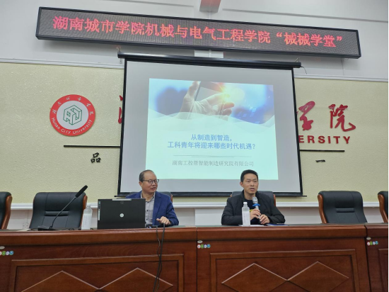 (通讯员:段虹伶)2024年4月11日,学院邀请湖南工控帮智能制造研究院余德泉院长,为在校大学生开展“从制造到智造,工科青年将迎来哪些时代机遇”创新创业专题讲座,学院200多学生参与讲座,讲座由学院党委副书记易志明主持。