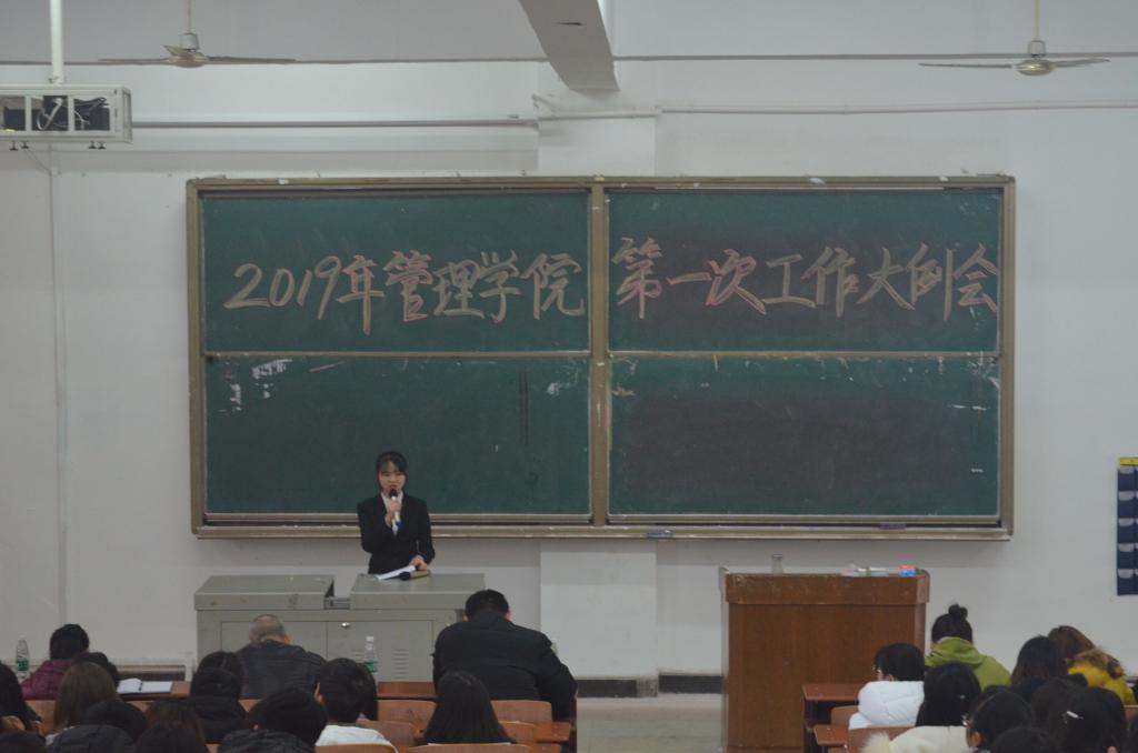2019年是五四运动一百周年,是中华人民共和国成立七十周年,同时按学校党委行政的战略部署,2019年也是永利官网核心竞争力攻坚、本科教学全面振兴、基层党建提质年。新学期伊始,为了更好地落实学校党委行政的任务部署,2月28日,在一教208室,管理学院召开了本学年第一次学生工作大例会。出席本次会议的有管理学院党委副书记王润华老师、蔡英杰老师;管理学院学生工作办公室辅导员曹资立老师、王方俊老师、李姗老师、熊鹏飞老师、张力老师,以及管理学院全体班干、院干参加了本次会议。