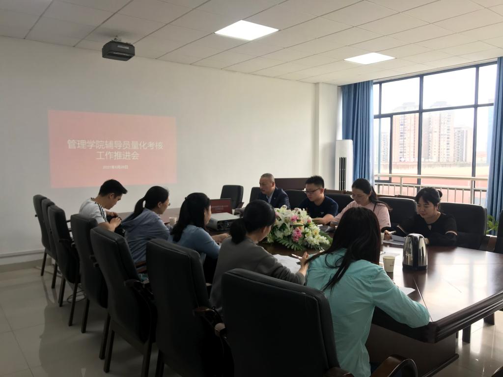 为进一步加强学院辅导员队伍建设,不断提高学生教育管理工作水平,有效贯彻以“立德树人为根本、以服务学生为宗旨”的指导思想,提升专职辅导员工作水平,显现工作业绩,我院于5月28日上午在管理楼622召开专职辅导员量化考核工作推进会,讨论了专职辅导员工作的量化方法与考核办法。会议由院党委副书记王润华主持,我院全体辅导员参加了本次推进会。