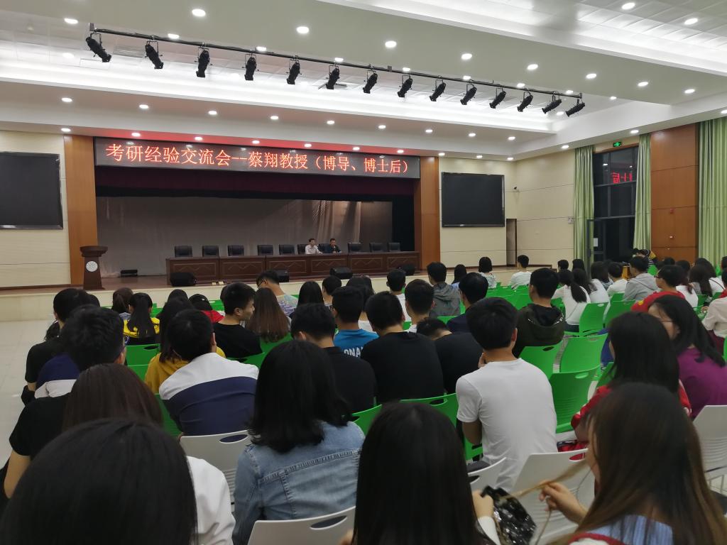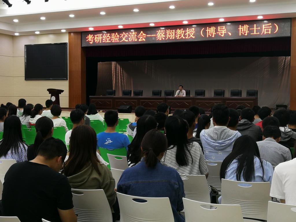 2018年4月18日晚7:00,管理学院就业与考研经验交流会于新食堂三楼学生活动中心举行,本次交流会由桂林电子科技大学博士生导师蔡翔教授进行主讲,yl23455永利官网管理学院党委副书记贺望林主持,出席本次交流会的有管理学院学工办主任王方俊、辅导员张力、14级考研录取学生代表以及15、16级有考研意向的学生。