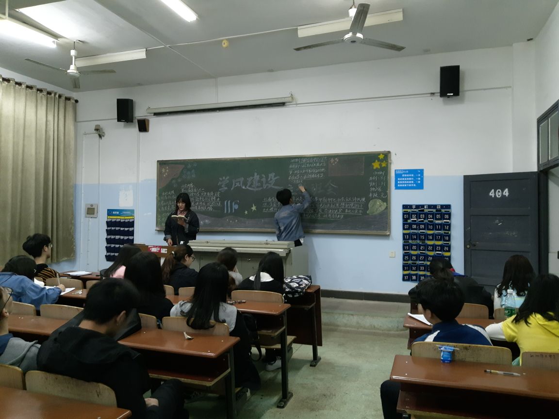 2018年4月15日19:40,管理学院2018年上学期第二次学风建设主题班会在二教顺利举行,本次班会由管理学院各班分别召开,班主任和班上同学都积极参与其中。