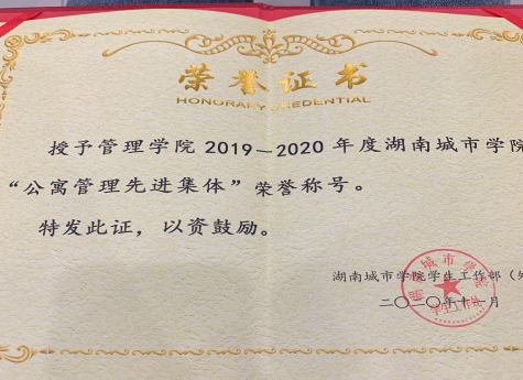在本次会议中,管理学院荣获2019-2020年“公寓管理先进集体称号”,以后我部门将持续加强干部的自身建设,树立良好的工作作风,保持学生干队伍的纯洁性,监督每位学生干部树立高度的责任感,增强服务意识,提高工作效率,更好地发挥学生干部的服务作用。同时,积极配合学生公寓团委、学生会的各项工作,继续发扬宿管部吃苦耐劳、真抓实干的优良传统,全心全意位同学服务,以更饱满和更积极的态度,迎接以后的工作,为管理学院再创辉煌。