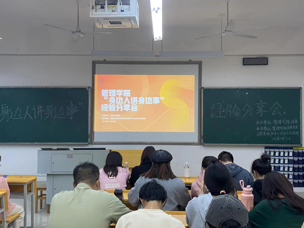纸上得来终觉浅,绝知此事要躬行。为了帮助同学们明确学习方向、增强信心与决心,激励我院学子砥砺前行,于11月21日晚7时整在管理楼204教室举办“身边人讲身边事”经验分享会活动。参与此次活动的有城市管理专业2104102班李家华、2104101班彭兰,财务管理专业2104802班向欣仪、2104802班黄莉萍。