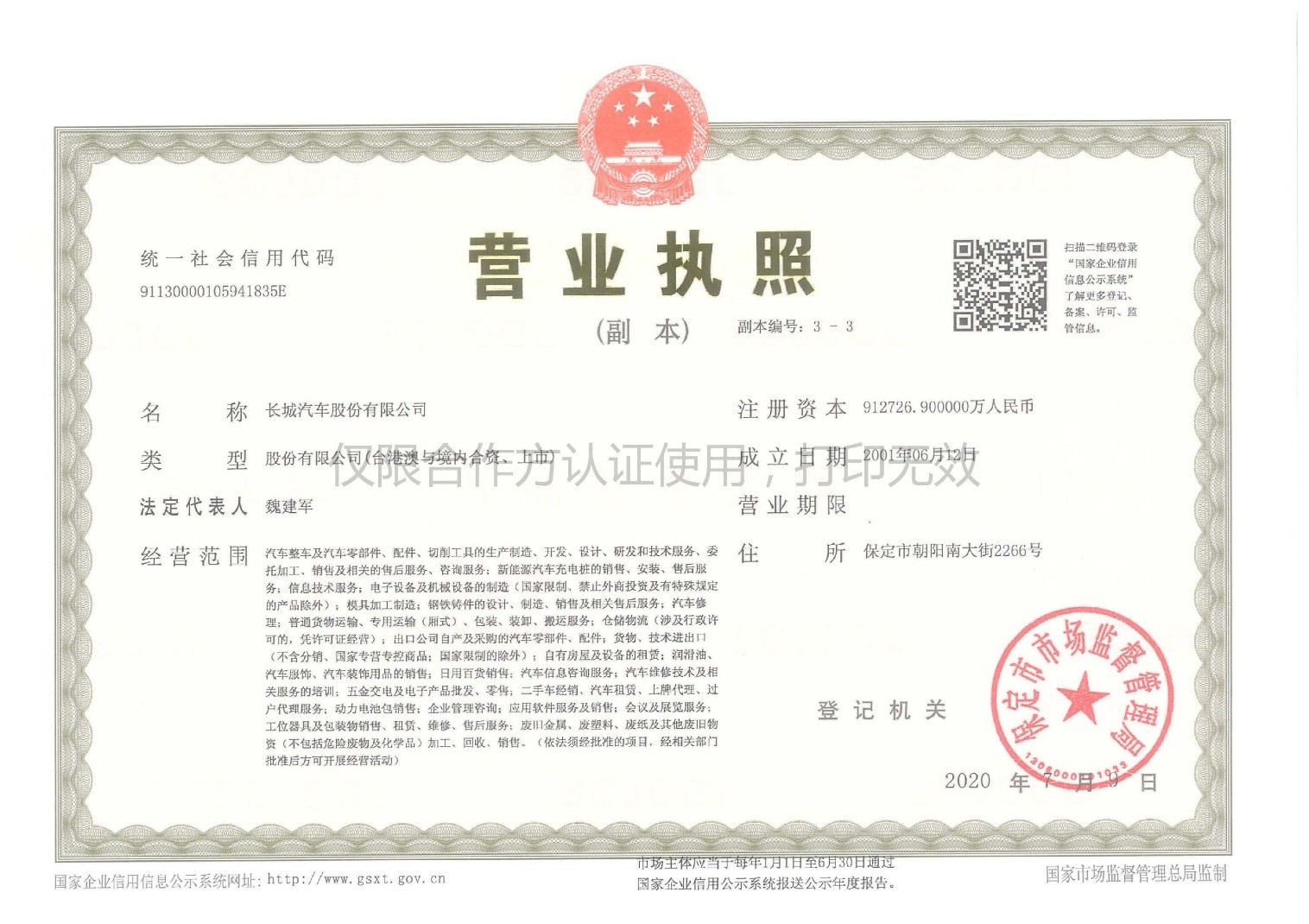 单位简介长城汽车股份有限公司(以下简称“长城汽车”)是全球知名的SUV、皮卡制造商,于2003年、2011年分别在香港H股和国内A股上市,截止2018年底资产总计达1118亿元。旗下拥有哈弗、WEY、欧拉和长城皮卡四个品牌,产品涵盖SUV、轿车、皮卡三大品类,具备发动机、变速器等核心零部件的自主配套能力,下属控股子公司70余家,员工6万余人。2018年7月10日,长城汽车与宝马(荷兰)控股公司正式签署了合资经营合同,合资成立光束汽车有限公司。长城汽车在国内已形成八大生产基地,继保定、徐水、天津生产基地后,长城汽车重庆永川生产基地项目将在2019年底建成投产,江苏张家港、山东日照、浙江平湖和江苏泰州几大项目正在稳步推进。在海外,长城汽车还在厄瓜多尔、马来西亚、突尼斯和保加利亚等多国建设了KD工厂。长城汽车独资兴建的俄罗斯图拉州工厂于2019年6月5日正式竣工投产,这是中国品牌汽车企业在海外首个具备四