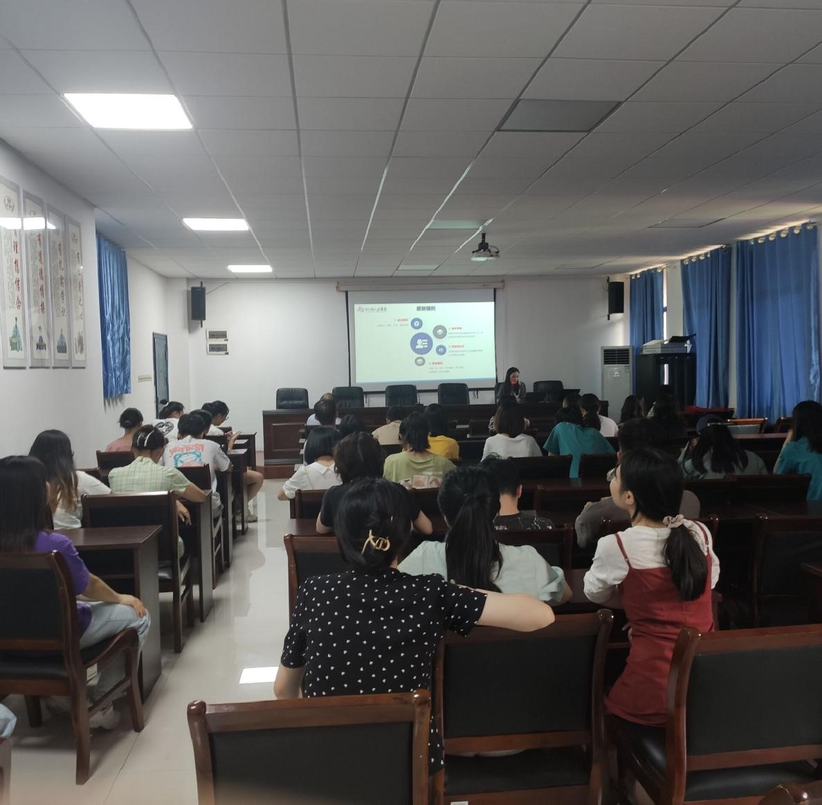宣讲会,以“线上线下相结合”“宣讲面试同开展”的模式进行。湖南红海人力资源有限公司益阳分公司的管理层带近百个岗位,亲临现场“喊话”毕业生在新的平台实现未来的无限可能。我院领导在宣讲会上激励毕业生抓住机遇,积极行动,为毕业生求职信心的提升注入了一剂强心针。宣讲会后,部分毕业生扫描红海直聘二维码,投递简历并且预留应聘联系方式,就业热情高涨。