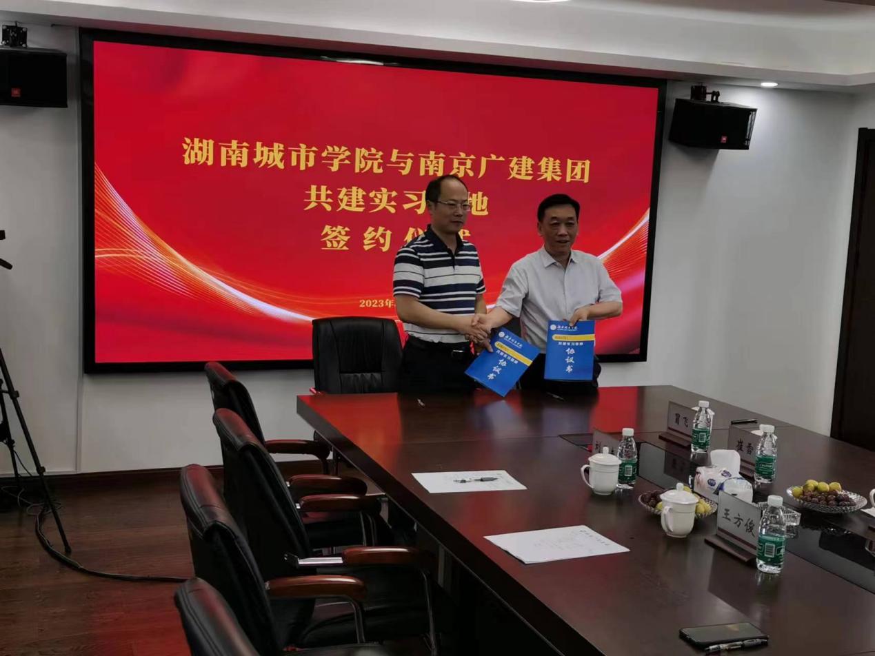 在南京广建集团,董事长覃建建、分公司负责人覃苍苍和覃磊等多位领导对汤勇一行的到来表示欢迎,在座谈会上,董事长覃建建介绍集团业务、未来发展和人才需求情况,汤勇院长对yl23455永利官网管理学院落实应用型人才培养目标和对接企业需求措施进行了说明。汤勇院长感谢广建集团对学院各项工作尤其是实习及就业工作的大力支持,并与南京广建集团签署了共建实习基地合作协议。
