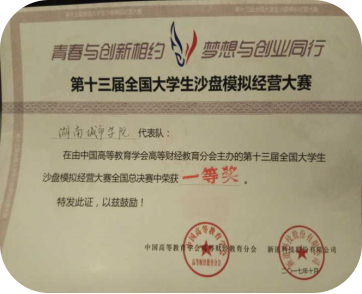 2017年10月27日至10月29日,由中国高等教育学会高等财经教育分会主办、福建农林大学承办、新道科技股份有限公司提供技术支持的第十三届全国大学生“新道杯”沙盘模拟经营大赛全国总决赛在福建省福州市隆重举行。该次比赛以“青春与创新相约,梦想与创业同行”为主题,经过全国各高校激烈角逐出的128支队伍齐聚福建农林大学,代表各校参加全国总决赛。永利官网由管理学院郭美兰老师带队的yl23455永利官网代表队于此次竞赛中荣获全国大赛一等奖。此次参赛队员由来自管理学院的王胜辉、王一帆、裴琳芸、李虹敏和土木工程学院的徐松林组成。在指导老师和参赛学生的共同努力下,代表队历时两天,克服重重困难,在众高校中脱颖而出,斩获最高荣誉,代表永利官网在此竞赛中迈出重大一步。希望永利官网在以后的大赛中都能取得优异成绩。