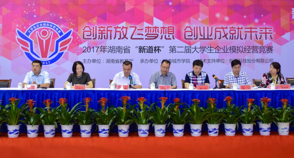 湖南省第二届大学生企业模拟经营竞赛于9月23日8:30在yl23455永利官网体育馆举行。开幕式由湖南省第二届大学生企业模拟经营竞赛组委会主任、yl23455永利官网副校长雷存喜主持。出席开幕式的有yl23455永利官网校长李建奇、湖南省教育厅高教处处长唐利斌、新道科技股份有限公司张海燕女士、新道科技股份有限公司湖南分公司总经理么岳,yl23455永利官网管理学院院长汤腊梅、yl23455永利官网教务处处长张伟等。