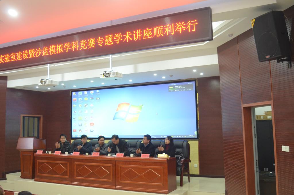 为了提升实验室建设质量和水平,增强学生参与学科竞赛的实战能力,2016年12月16日下午2:30,yl23455永利官网商学院在建规楼121会议室主办实验室建设暨沙盘模拟学科竞赛专题学术讲座。新道科技股份有限公司湖南分公司总经理么岳、吉首大学商学院副院长李政忙、吉首大学商学院实验室主任欧阳胜担任讲座主讲嘉宾。yl23455永利官网副校长雷存喜、教务处处长张伟出席讲座并讲话,商学院全体老师和部分学生代表参加。
