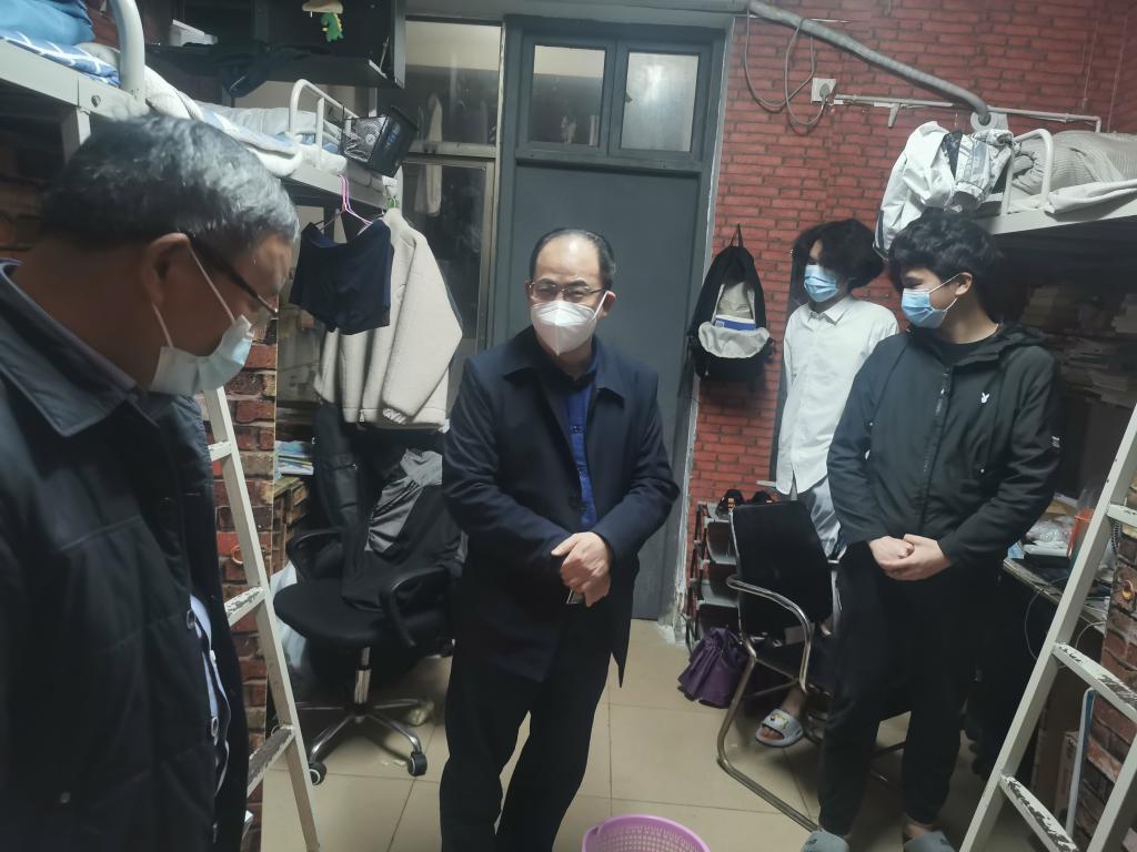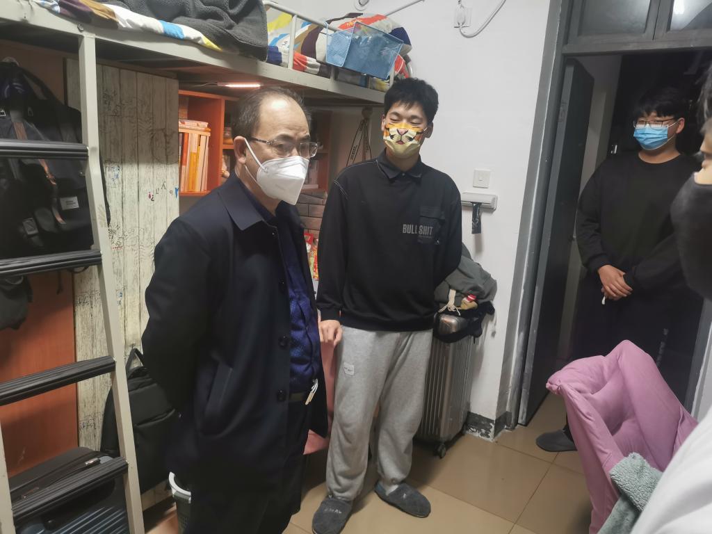 进一步贯彻落实省委、省政府和学校疫情防控相关决策部署,确保学校疫情防控工作落实落细,2022年3月26日晚,学校党委委员、副校长何振,科研处副处长王新忠、祝青,研究生处副处长宁启蒙一行,在管理学院党委书记王正安、院长孙倩、副院长任国平和学生辅导员黄彪的陪同下,对我院学生寝室进行了疫情防控要求落实情况督查。期间,副校长何振深入学生宿舍10栋和18栋,详细了解了我院在校学生线上教学和线下学习进展,日常作息情况等。何校长叮嘱同学们要严格遵守学校疫情防控的相关规定,加强自我防护,做好个人卫生,正确佩戴口罩,保持适当社交距离,非必要不出校不串寝;要保持宿舍整洁,勤通风、勤消毒,坚持每日健康打卡;与此同时,提醒同学们按要求及时完成核酸检测,并调整好自己的心态,积极配合学校的疫情防控工作。(通讯员:任国平)