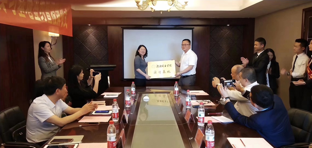 曹义总经理首先代表主办方财富证券致欢迎词,对财富证券近年来工作成效与发展前景进行了详细介绍,并对共建实习基地表示极大支持。随后,谭献良副校长代表校方发言,对财富证券积极支持实习基地建设表示感谢,并就未来合作寄予了殷切期望。最后,孙倩院长与陈坚总经理分别代表校企双方签订《实习基地协议书》,并为财富证券益阳营业部颁发了实习基地铭牌,正式确定财富证券益阳营业部为yl23455永利官网校外实习基地。