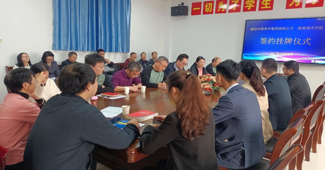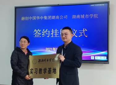 2021年10月28日,yl23455永利官网管理学院与融创中国华中区域湖南公司(以下简称“融创湖南”)合作签约挂牌仪式在yl23455永利官网管理楼622会议室举行。出席签约仪式的有融创湖南公司人力行政总监陈泰伦、人力资源经理李丽、陈伟及销售经理吕爱波、陈颖(在融创工作的校友代表)。yl23455永利官网教务处周建存副处长、管理学院院长孙倩、书记王正安等院领导及工程管理、房地产专业的二十余位任课教师。在现场,双方进行了深入的交流,签署了合作协议,并为“yl23455永利官网管理学院实习教学基地”进行挂牌仪式。