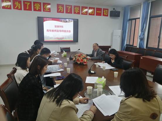 15:30~17:00,为促进青年教师培养,发挥老教师的“传、帮、带”作用,全面提高青年教师的教学科研水平,管理学院在管理楼622举行了青年教师及导师座谈会,会议由管理学院副院长刘刚主持。座谈会上,各位青年教师分享了教育教学工作中的心得体会,提出了各自对教学科研、专业发展方面的困惑。随后青年教师导师进行了针对性的分析与建议。最后,孙倩院长对青年教师与青年导师提出三点要求。第一,青年教师要珍惜这次机会,虚心向老教师学习,以适应新的岗位需要。第二,青年教师导师要帮助青年教师做好规划,明确教学科研计划。第三,青年教师要对教师职业有更多地认可,并按学科专业属性融入学院教学科研团队。