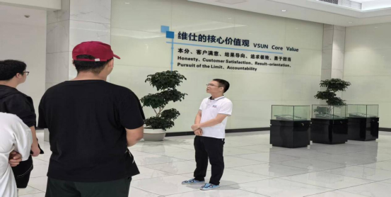 6月20日上午,学生们来到维仕科技,参观了产品展览中心和生产车间。在人力资源部毛经理的带领下,同学们近距离观摩了自动化生产线制造电子扬声器、受话器等产品的全过程,对科技与工业生产的融合有了更直观的认识。随后的讲座中,毛经理全面介绍了公司的发展历程与技术优势,并通过模拟面试环节帮助同学们提前熟悉职场场景。