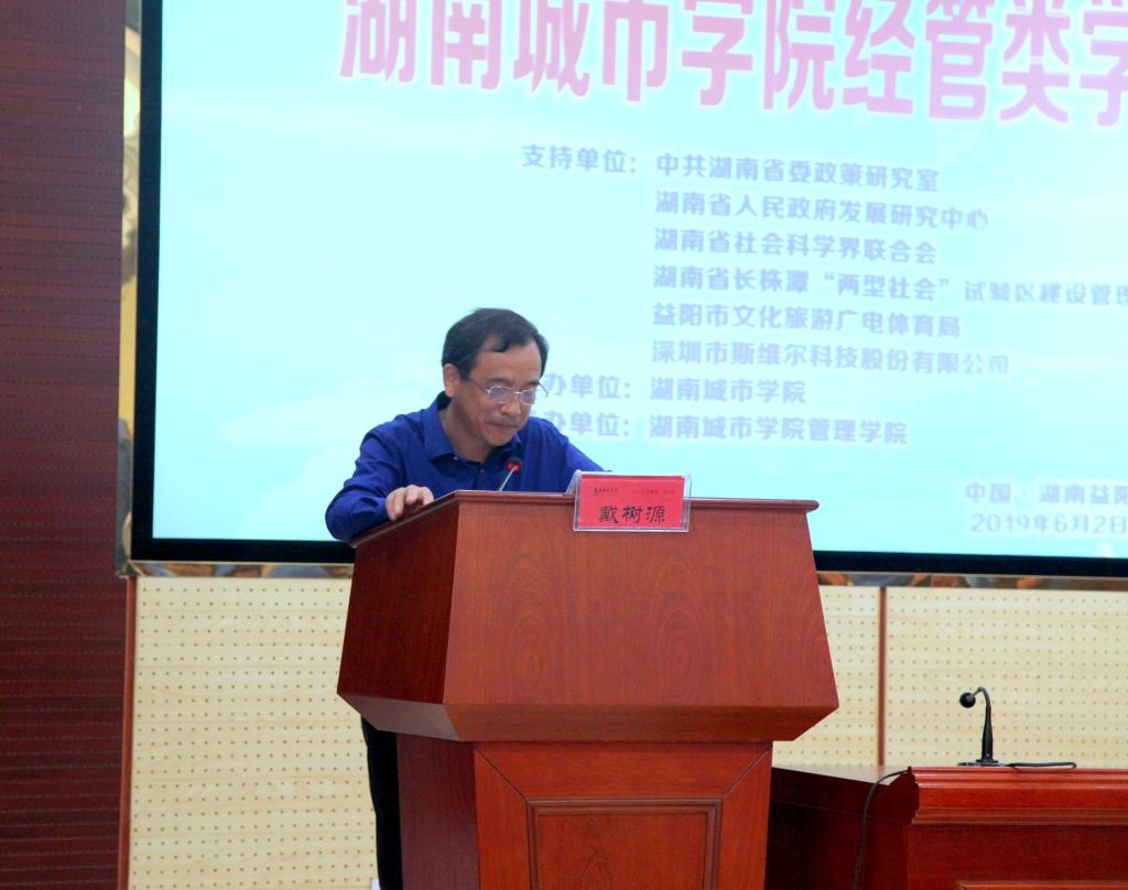 为深入贯彻落实全国教育大会精神,坚持以本为本,切实提高人才培养质量,加强永利官网经管类学科专业建设,6月2日管理学院承办了由学校主办的经管类学科专业建设研讨会。研讨会开幕式在建筑规划楼举行。应邀出席开幕式的有湖南省委政策研究室、中国致共党湖南省委员会、湖南省人民政府发展研究中心、湖南省社会科学界联合会、湖南省长株潭“两型社会”试验区建设管理委员会、益阳市城市管理行政执法局、益阳市房地产管理局、益阳市文化旅游广电体育局等单位的领导,以及深圳市斯维尔科技股份有限公司、湖南泽华私募股权基金管理有限公司等单位负责人。出席会议的学校领导有校长李建奇、党委副书记汤放华、副校长郑卫民、副校长谭献良等。参加会议的还有教务处、人事处、科研处、学科建设与发展规划处领导,以及管理学院全体教职工和学生代表共150余人。