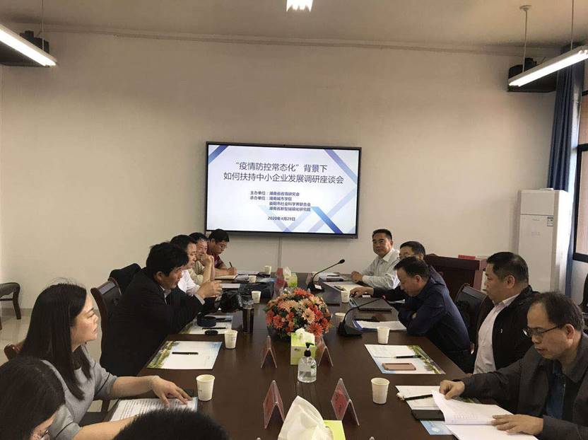 为了深入贯彻落实4月17日召开的中共中央政治局会议精神,充分发挥地方智库作用、积极建言献策,做好我省特别是益阳市在常态化疫情防控工作条件下的“六稳”工作,将“六保任务”尤其是“保市场主体”任务坚决完成好,持续推进经济高质量发展,4月29日,由湖南省情研究会主办,yl23455永利官网、市社科联承办的“疫情防控常态化背景下如何扶持中小企业发展”调研座谈会在我市举行。省社科联党组成员、第七届委员会副主席、研究员汤建军,省文史馆副馆长、研究员李跃龙,市政协副主席高德文,yl23455永利官网副校长何振、管理学院院长孙倩出席。