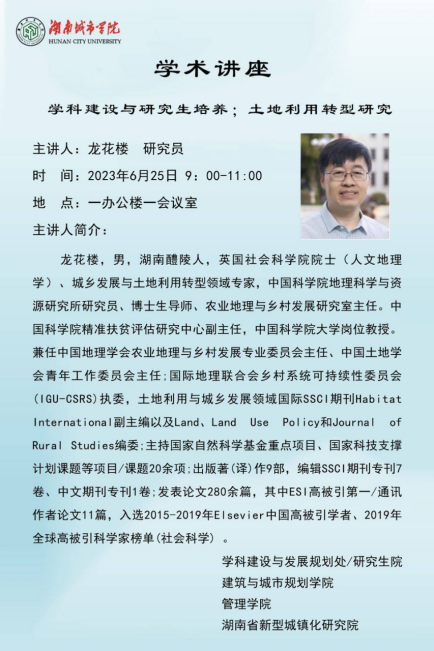 6月25日上午,英国社会科学院院士(人文地理学)、城乡发展与土地利用转型领域专家,中国科学院地理科学与资源研究所研究员、博士生导师、农业地理与乡村发展研究室主任龙花楼研究员应邀来永利官网进行“学科建设与人才培养”的专题讲座。讲座由学校党委书记汤放华教授主持,学科建设与发展规划处处长、研究生院院长孙倩教授、管理学院汤勇院长、任国平副院长、刘刚副院长及管理学院20余位教师代表参加了座谈交流。