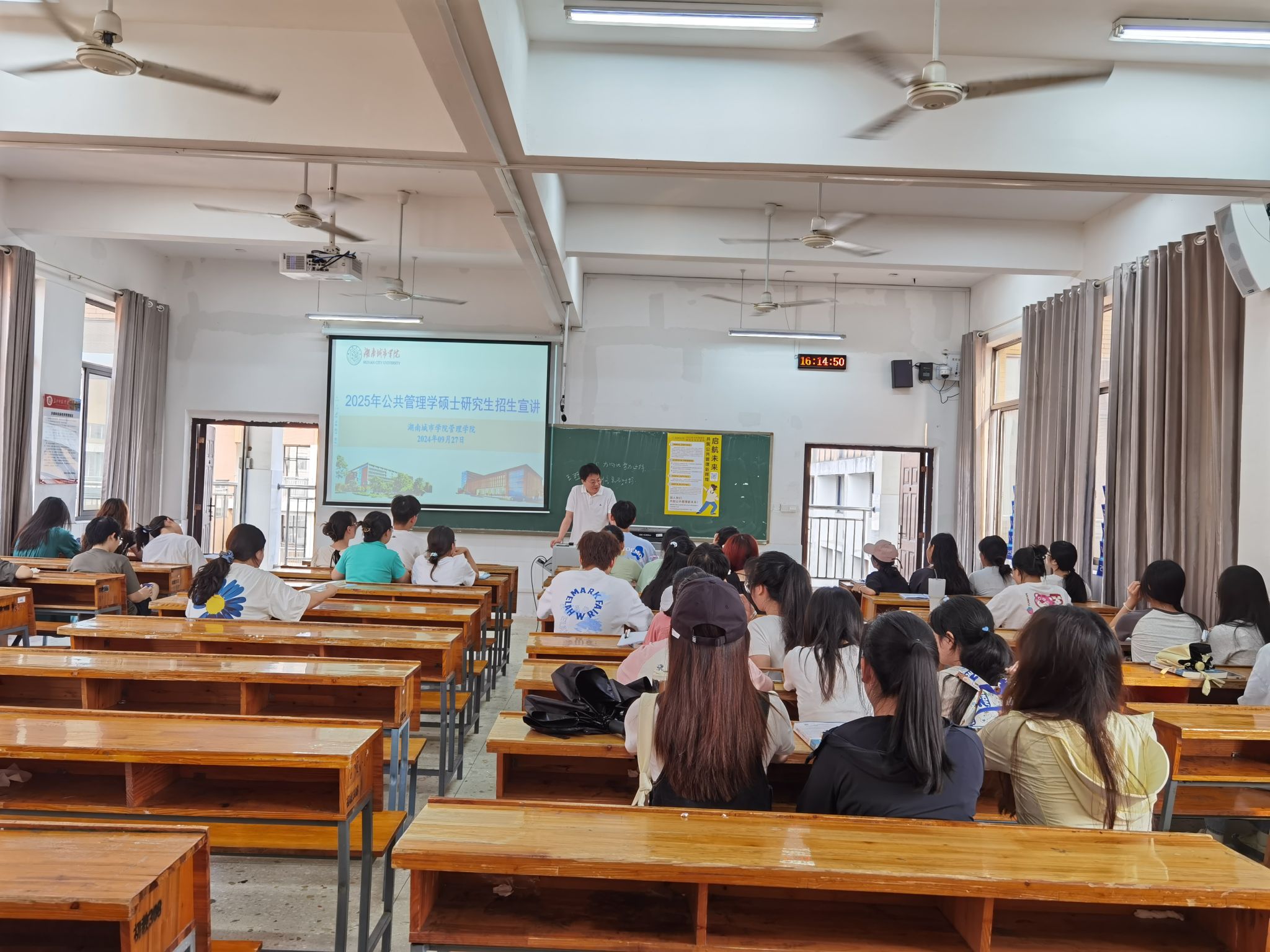 本网讯(通讯员:申翔元)2024年9月27日,管理学院在长沙师范学院成功举办了一场公共管理学硕士研究生招生宣讲会。本次宣讲会由管理学院研究生办主任张胜老师主持,吸引了众多对未来学术道路充满热情的学子前来参加。