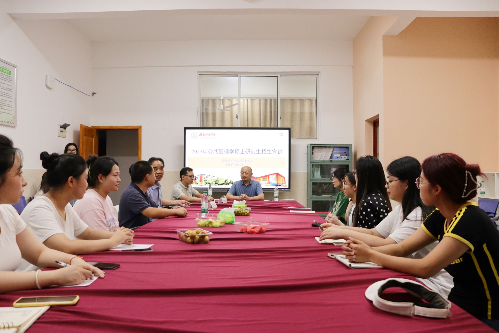 本网讯(通讯员:申翔元)为深化公共管理学科研究生的培养与合作,管理学院于2024年9月12日在湖南信息学院成功举办了公共管理学一级学科硕士点的招生宣讲会。本次活动由管理学院副院长任国平教授主持,刘刚副院长、罗放华教授及张胜博士等共同参与,为湖南信息学院工程造价、工程管理等专业学生带来了一场内容丰富的招生宣讲。