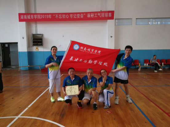 yl23455永利官网2019年“不忘初心、牢记使命”教职工气排球比赛于5月23日在学校体育馆拉开帷幕,我处主力队员都将近五十几,他们克服各种困难,为夺冠奠定了基础。女队员易婵娟,家中二个小孩和自己都生病发烧,但她坚持打完吊针按时赶到比赛进行比赛。此次比赛拉拉队也比较拉风,锣鼓、喇叭和起伏不迭的“加油”声,鼓舞了参赛队员的士气。
