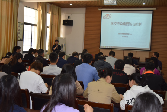 5月8日下午,永利官网2019年春季传染病暨肺结核病防控知识培训班在第二办公楼303会议室开班。培训班由副校长雷存喜教授主持,益阳市疾控中心流行病和传染病科主任、主任医师谢立芝主讲。各二级学院分管学生工作的副书记、辅导员老师、学生工作部(处)和团委全体工作人员、基建与后勤管理处、招生就业处部分工作人员共100余人参加了培训。