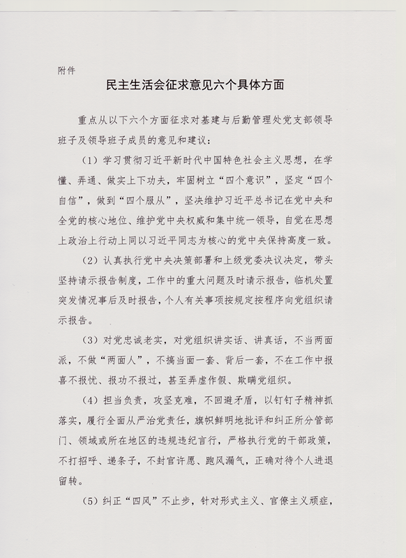 关于征求对基建与后勤管理处党支部2017年度党员领导干部民主生活会意见和建议的通知
