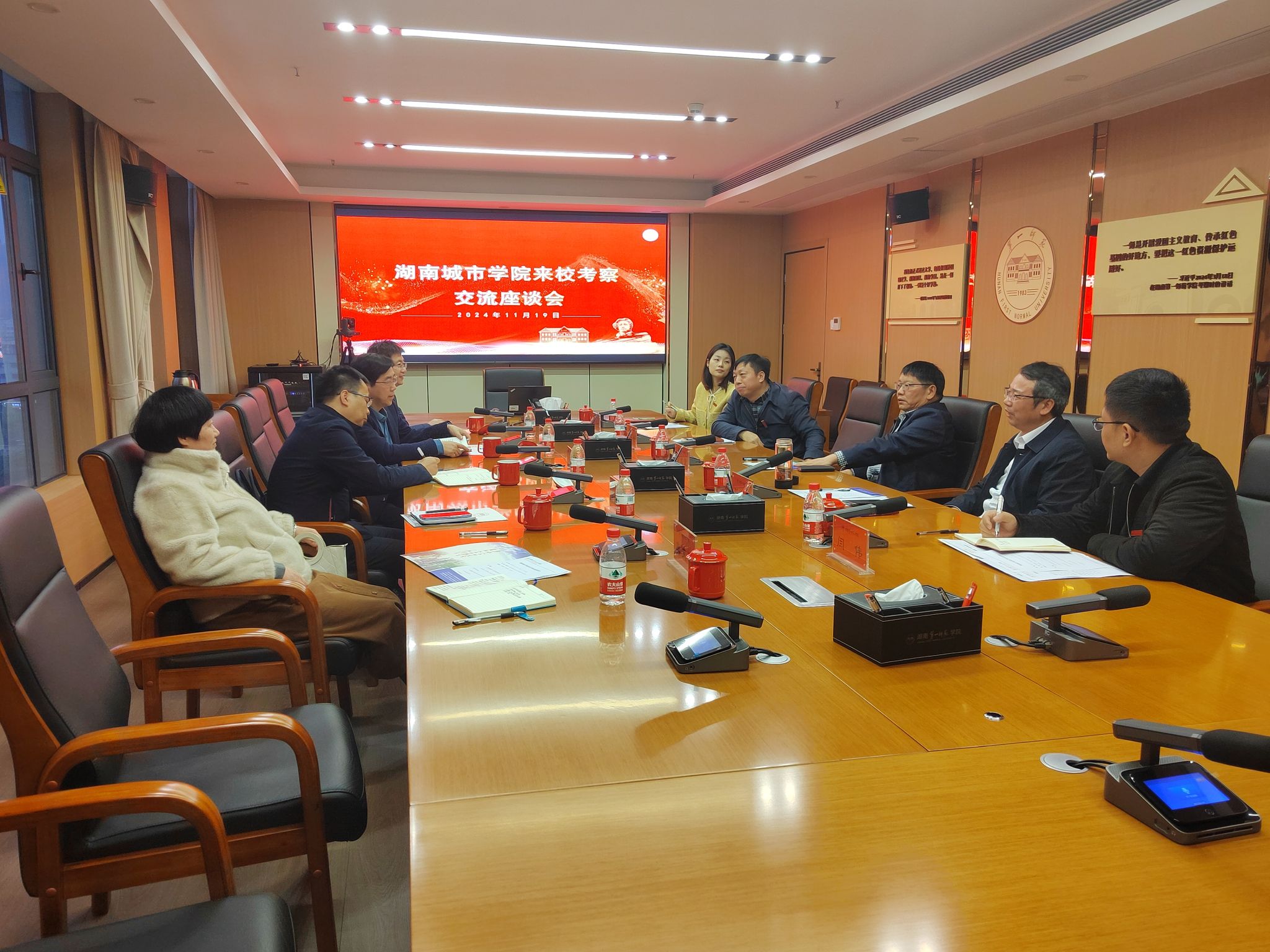 为进一步学习借鉴兄弟高校人事制度改革先进经验与做法,11月19日下午,学校党委副书记袁志成带领人事处一行5人赴湖南第一师范学院调研学习。湖南第一师范学院党委书记罗成翼、副校长彭晓辉以及人事处处长黄小喜热情接待了袁志成一行。双方就绩效改革、人才工作、职称评审、岗位设置与聘用等人事管理工作进行交流座谈。