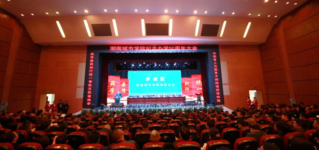 学校党委书记罗成翼致辞。他深情回顾了学校50年办学历程。合并前的两校艰苦创业、迎难而上,为学校发展积淀了厚实根基。学校初创者和历届领导者们白手起家,迎难而上,艰苦创业,坚守师范定位,培养了一大批名校长、名教师,为地方基础教育做出了重大贡献。突出城建特色,依托行业办学,对接中小城镇,为全省市县培养了大批规划建设人才,被国家教委确定为全国示范性高工专重点建设学校。新组建的城院抢抓机遇、融合奋进,为学校发展开启崭新征程。本世纪初,顺应高等教育体制改革大潮,yl23455永利官网应运而生。两校合并伊始,快速推进深度融合。更新教育观念,转变教育模式,顺利实现从专科到本科的转型。2012年,第二次党代会明确了“三步走”发展战略,不断完善本科教育教学体系,人才培养质量不断提高,顺利通过了教育部本科教学合格评估,推进新校区二期工程建设,完成了两校区合一,办学质量与办学效益大幅提升。新时代的城院破立并举,改革创新,稳中快进实现了跨越式发展。2016年第三次党代会以后,学校顺应教育领域综合改革的时代潮流,自主全面系统地推进整体性重塑,以大改革推进了快发展。开展“三个发展”大讨论,制定“一二三五”发展战略;目标导向分类大发展,做强城建类学科、做大信息制造类学科、提质管理服务类学科、夯实基础类学科;破立结合推进大改革,一是破分而散,立精而集、专而能的机构调整与编制改革。将16个二级学院调整为12个。二是破身份限制,立业绩导向和核心指标导向的绩效分配与目标管理考核改革,激发干事创业活力。三是破守摊平庸,立能上能下,41名处级干部主动退出领导岗位,一批80后博士教授走上重要中层岗位。四是破封闭僵化,立校企(地)合作、产教融合的应用型人才培养模式改革,构建“1234”应用型人才培养体系。五是破粗而松,立细而实、紧而准的精细管理改革,开源节流创造近2亿效益。六是破传统滞后,立应用型、现代型制度体系的大学制度改革,推进治理体系和治理能力现代化。改革创新取得大成效。4年多来,新建运动场、和学生公寓,校园道路提质、美化亮化、教学楼栋改造等基本建设,职工待遇和幸福指数显著提高,获批“湖南省新增硕士学位授予单位立项建设单位”;高水平通过了教育部本科教学工作审核评估;跻身湖南省“高水平应用特色学院”行列;2020年,列入湖南省本科第一批次招生,实现了几代城院人的梦想。