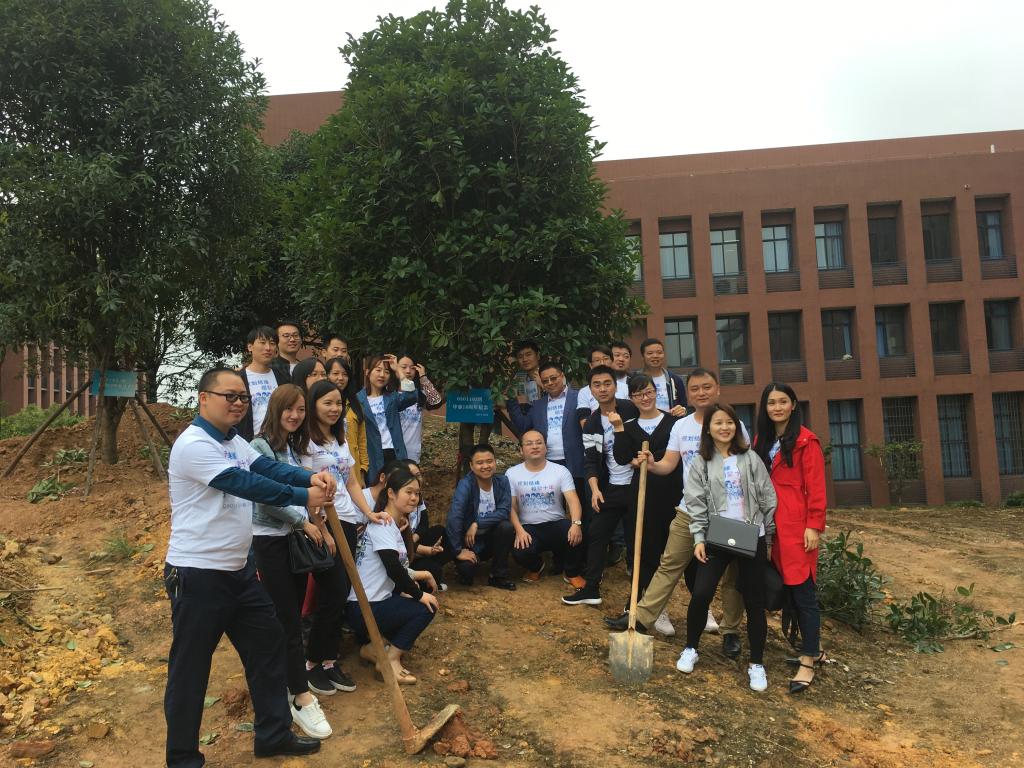 座谈会后,校友们在建规楼玩起了撕名牌的游戏,并合影留念,在校友林亲手下纪念树。这次聚会让同学们又一次感受到了曾经熟悉的校园生活,拉近了十年来天各一方的距离。